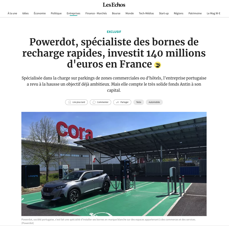 Powerdot’s commitment to France and its investment plans were widely praised in the media. Luis Santiago Pinto also answered questions from TF1 for the 8 p.m. news and gave an exclusive interview to Les Echos.